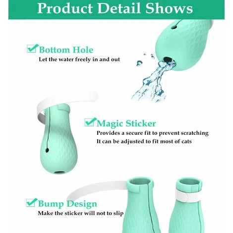 3. Facile à transporter: il vous suffit de mettre les pattes du chat dans les pantoufles de votre animal, puis de régler et de fixer à la bonne taille avec l’autocollant magique.