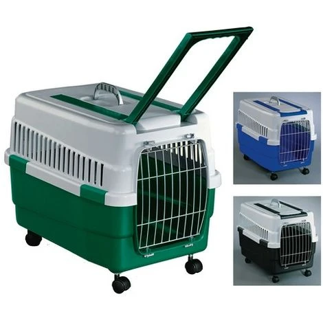 Ouverture sur le devant, assemblage par clips, roulettes et poignées de traction. Une caisse de transport très utile pour de petits animaux, chiens et chats. coloris assortis suivant arrivage.