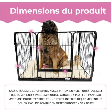 Remarque : ne convient pas à une utilisation extérieure à long terme (oxydation avec le temps). Achetez des panneaux de chiot galvanisés si nécessaire.