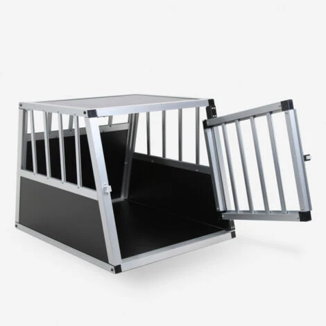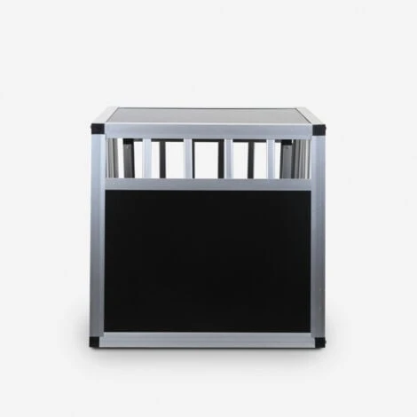 Robuste mais en même temps facile à manipuler, cette caisse de transport rigide est fabriqué avec une structure trapézoïdale en aluminium de haute qualité qui s’adapte parfaitement aux dimensions des porte-bagages de nombreuses voitures et dont les mesures conviennent au transport de chiens de petite ou moyenne taille. Les côtés ventilés et inclinés assurent un positionnement parfait dans le coffre, avec des grilles sur tout le périmètre qui assurent une bonne circulation de l’air sans risque de surchauffe et offrent également une excellente visibilité pour votre chiot, qui se sentira parfaitement à l’aise. Extrêmement facile à nettoyer grâce à la construction en MDF fini en mélamine, la caisse résiste efficacement aux agents atmosphériques et est équipée d’une porte avant fixée avec de solides charnières métalliques qui facilitent l’accès et des coins en plastique pour éviter que votre petit chien ne se blesse pendant le voyage.