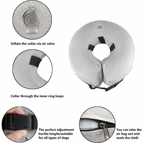 Collier gonflable pour chien, permettent d’être inflate avec pompe à ballon et même la bouche, facile à utiliser.