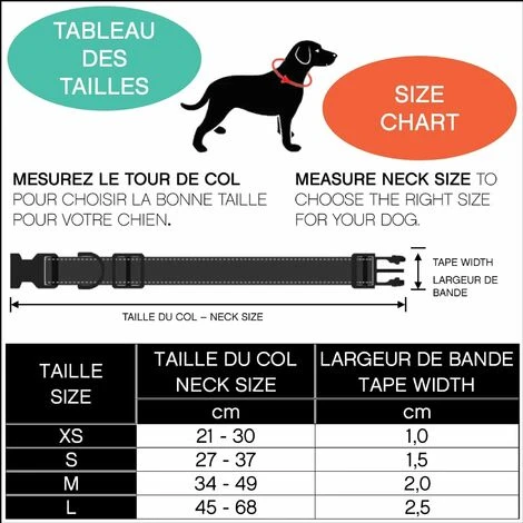 Flexibilité – Son triple système de réglage vous permet de l’ajuster parfaitement et d’ajuster sa taille en fonction de la croissance de votre chien. Nos colliers conviennent aux chiens de petite, moyenne et grande taille.
