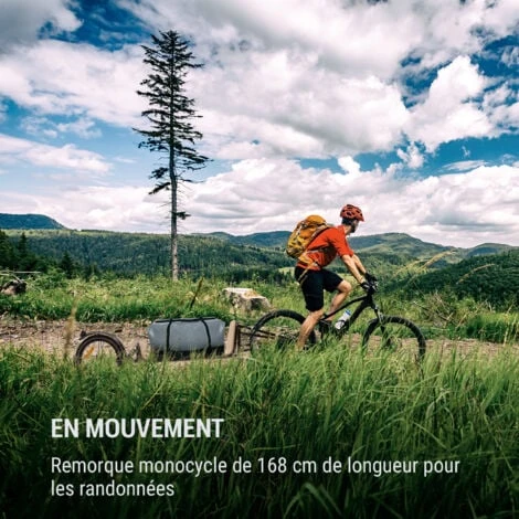 En mouvement : remorque monocycle de 168 cm pour le trekking