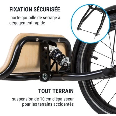 Toujours en mouvement. La remorque pour vélo Klarfit Companion Chaser vous accompagne dans vos grandes et petites randonnées. Vous pouvez transporter jusqu’à 30 kg de bagages sur la remorque monocycle extrêmement stable avec sa surface de chargement de 75 x 41 cm en bois de bouleau multiplex. Les sangles fournies maintiennent le chargement en place et l’empêchent de glisser. Grâce à la fixation par goupille de serrage avec Quick Release, le vélo suiveur peut être accroché et décroché en un tour de main sur des vélos de 20″ à 28″. Le positionnement à une voie assure une conduite particulièrement agréable, car elle n’influence pratiquement pas le comportement de la roue, contrairement aux remorques à deux roues. La remorque suiveuse Klarfit Companion Chaser est disponible soit avec un cadre supérieur renforcé, soit sans cadre avec une suspension amortissante.