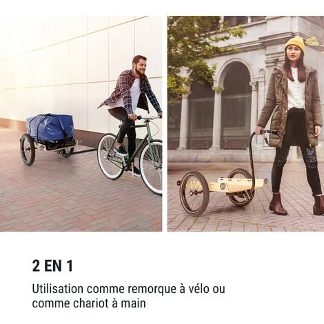 2-en-1: utilisation comme remorque de vélo ou comme chariot manuel