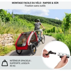 - Dimensions de la remorque (avec le timon) : environ 43 x 53 x 120 cm (LxHxP)