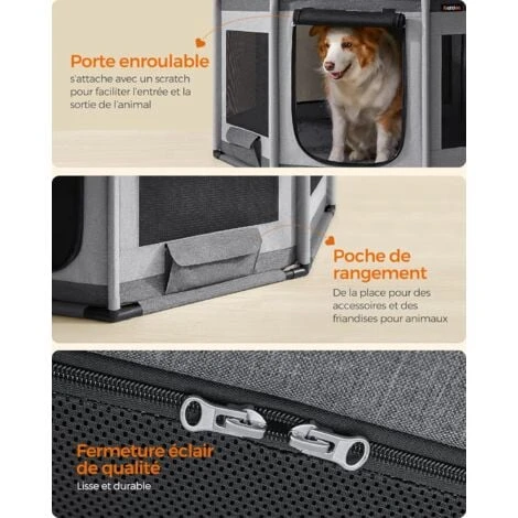-Des ouvertures en maille et un grand espace intérieur permet à votre animal de se sentir à l’aise.