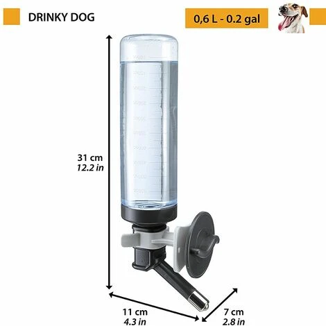 Très utile lorsque vous voyagez avec votre chien, l’abreuvoir Drinky Dog est fabriqué en plastique transparent atoxique et recyclable, essentiel pour s’assurer que votre animal de compagnie puisse avoir toujours de l’eau propre. L’abreuvoir est équipé d’une balance graduée et d’un système de fixation et de décrochage rapide à la grille du panier de transport. Idéal pour les différents modèles de paniers de transport : Atlas Car, Atlas Professional, Atlas Classic et Atlas Vision. Le distributeur d’eau Drinky Dog a une capacité de 0,6 litres.