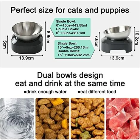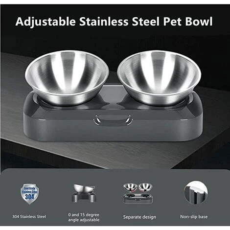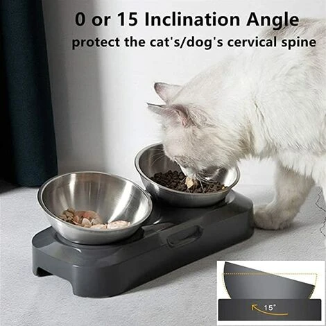 Protection Angle D’alimentation Réglable – Poussez simplement le bol pour chat dans le bouton de 0 degrés ou 15 degrés, une hauteur de bol raisonnable peut réduire la pression sur le cou, l’arthrite ou le dos du chat.