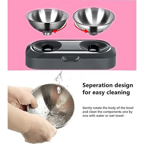 Amovible pour une Conception de Nettoyage Facile – Le bol pour chat surélevé est composé d’un support et de doubles bols pour chat, faciles à installer, à séparer, très faciles à nettoyer et à ajuster.