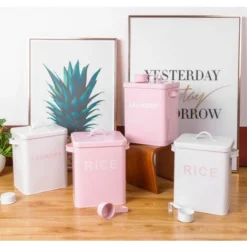 Seau De Rangement étanche à L’humidité Scellé Pp Pour Meubles Pour Animaux De Compagnie Rose Grand