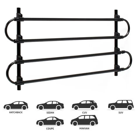 La construction en fer octroie une stabilité supplémentaire et contribue à limiter largement les risques de blessures, surtout grâce à sa forme arrondie. Elle se monte facilement entre le siège arrière et le coffre. Aucun perçage n’est nécessaire. La grille mesure 40 cm de longueur et peut être réglée individuellement sur une largeur de 83-145 cm, grâce à la forme pratique de ses ailettes. Un avantage qui la rend adaptée à presque tous les modèles de véhicule.