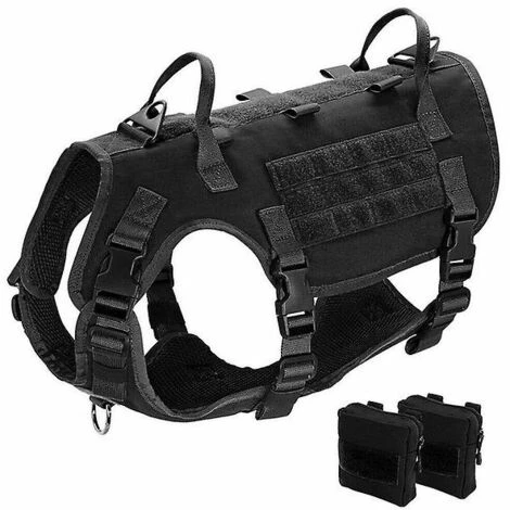 Type : harnais tactique militaire Molle pour grands chiens extra larges, gilet de service, harnais et pochettes.