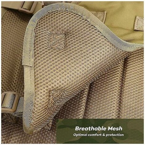 SYSTÈME MOLLE – Chaque côté comprend 2 sangles Molle + un panneau de bandes auto-agrippantes + 3 boucles en nylon pour attacher des pochettes Molle, des panneaux d’identification, des patchs de moral, des accessoires, tels qu’un bol plié pour chien, un