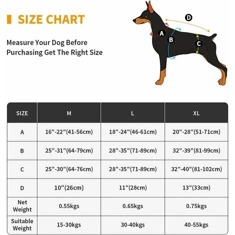 Matériau durable et maille confortable : fabriqué en nylon 900D avec des coutures solides pour plus de durabilité. Rembourrage en maille pour protéger la peau de votre chien, tandis que la maille respirante maintient votre chien ventilé et confortable.