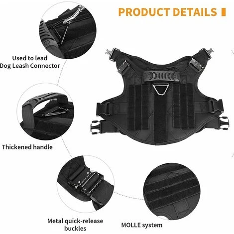 Harnais tactique pour chien : trois tailles au choix, tour de cou : 41 – 71 cm, tour de poitrine : 64 – 99 cm, longueur du corps : 26 – 33 cm. Idéal pour les chiens de taille moyenne.