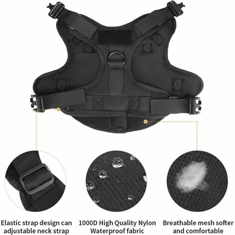 Système Molle : Le gilet pour chien est doté de multiples sangles et de velcro, le système MOLLE permet à votre chien de transporter son équipement pendant l’entraînement, les promenades quotidiennes, les excursions.
