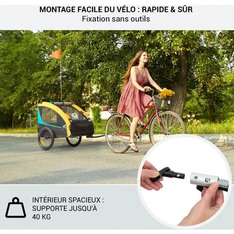FIXATION FACILE ET RAPIDE : La barre d’attelage avec accouplement prĂ©-assemblĂ© est facilement fixĂ©e Ă la roue arrière via un support sur l’essieu arrière et une sangle de sĂ©curitĂ© de secours. Il est ainsi très facile de fixer la remorque pour chien.