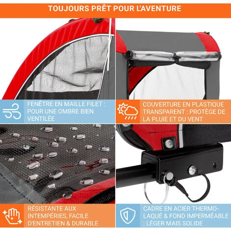 PROTÉGEZ VOTRE ANIMAL DE COMPAGNIE : Cette remorque velo chien est idéale pour emmener votre chien partout avec vous. Fabriquée avec une toile Oxford 600D, la remorque est dotée d’un plancher en plastique antidérapant, hydrofuge et facile à nettoyer.