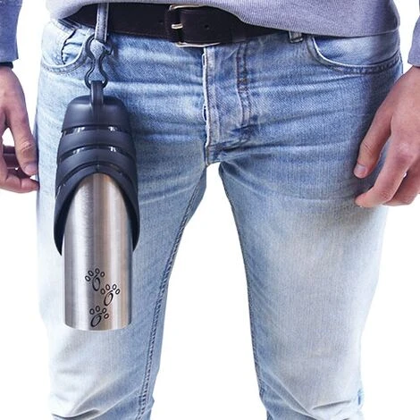 Bouteille en acier inoxydable pour aller faire une promenade avec votre chien. Cette bouteille est perfecta pour passer une journée avec votre animal, pour l’emmener en voyage, ou même pour la promenade quotidienne dans les jours d’été. La bouteille est en acier inoxydable et le bouchon est en plastique.