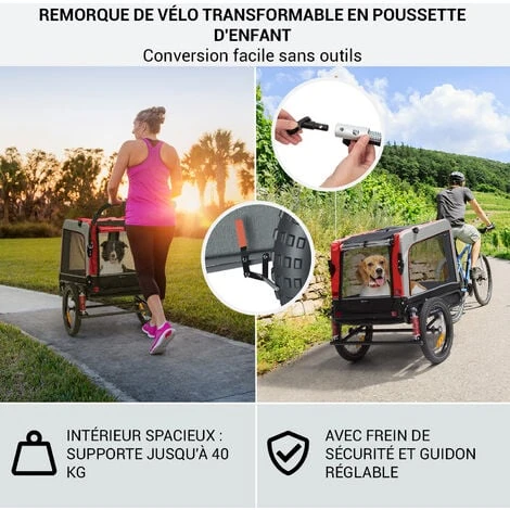 2-en-1 : Remorque vélo pour chien & poussette pour chien deux en un