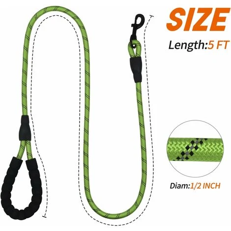 Taille et couleur : 1,5 m de long x 1,2 cm de large, convient pour les chiens de moyenne et grande taille. Il est confortable de promener votre chien avec une poignée rembourrée douce. Elle protège vos mains contre d’éventuelles blessures.