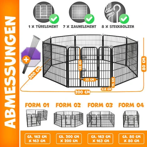 • 1 x parc pour chiots (7 x éléments de grillage sans porte, 1 x élément de grillage avec porte)