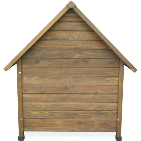 Sobre et naturelle, cette niche fabriquée en sapin se glissera facilement dans votre jardin. Grâce à ses pieds surélevés, votre chien sera parfaitement protégé contre le froid et l’humidité provenant du sol. Cela permet également à l’air de bien circuler au-dessous de la niche.