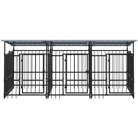 Offrez de la sécurité et du confort à votre chiot avec ce chenil. Cage pour chien tout-en-un : le chenil polyvalent offre de multiples usages : jouer, faire de l’exercice, dresser ou simplement assurer la sécurité de votre chien. Il sera le paradis de jeu parfait pour vos amis à quatre pattes !Parois en barres d’acier : les parois en barres d’acier de la niche pour chien permettent d’éviter les méfaits et les accidents inattendus tout en permettant la ventilation.Construction robuste : grâce à la construction robuste en acier enduit de poudre, cette cage pour chien est durable et conçue pour durer.Design pratique : les portes à charnière avec systèmes de verrouillage verrouillables de l’enclos pour chiots assurent une sécurité et une sûreté supplémentaires pour vos chiens.Toit utilitaire : le toit de ce parc pour chien offre une protection contre le soleil, la pluie, la neige, ainsi que d’autres conditions météorologiques. Remarque :Chaque produit est livré avec un manuel de montage dans la boîte pour un montage facile.