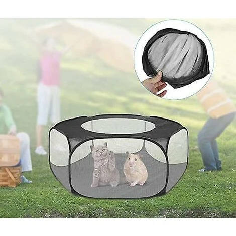 Transparent et respirant : Cette cage hexagonale pour animaux de compagnie avec six côtés en maille offre à votre animal une vision large, une excellente ventilation et une interaction avec les animaux, même dans une cage. Les chats, les chiots et les lapins ont une excellente capacité de saut et peuvent sauter facilement. Et cette housse zippée résout le problème exact, gardant vos animaux de compagnie en sécurité à l’intérieur, loin de ramper. Fond imperméable : La base inférieure de cette tente est fabriquée en tissu de taffetas de polyester 190T, imperméable et facile à nettoyer, empêche efficacement la pénétration d’urine, gardant votre sol propre. Installation et pliage faciles : Le cadre flexible intégré permet à cette tente de se déployer automatiquement en quelques secondes, pour créer une aire de jeux pour votre animal de compagnie, et se replie sans effort dans une taille super mini pour la portabilité lorsque vous êtes en déplacement avec un animal de compagnie. Parc pour petits animaux : Convient à divers petits animaux de compagnie, tels que les hamsters, les chinchillas, les cobayes, les furets, les écureuils et les lapins, les libérant d’une petite cage limitée et offrant suffisamment d’espace pour la libre circulation. Comment nettoyer : Rincer et brosser avec de l’eau, puis placer au soleil et sécher. Remarque : il ne convient pas au lavage en machine car il est portable et léger. Le parc pour petits animaux est léger et peut être transporté à l’extérieur sans effort. Pliage Le cadre en acier robuste et flexible intégré permet à cette tente de s’ouvrir automatiquement en quelques secondes et de se replier sans effort à une taille super mini pour la portabilité lorsque vous êtes en déplacement avec un animal de compagnie. Lors de l’ouverture, veuillez tenir à l’écart des enfants et du visage.