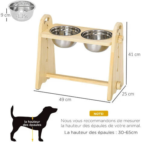 – Hauteur et inclinaison panneau support des gamelles réglable suivant le gabarit de votre chien et sa croissance