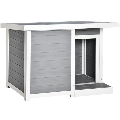 – Niche chien sur pied bicolore gris et blanc idéale pour ajouter une touche supplémentaire d’élégance à votre intérieur ou extérieur