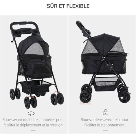 – Poussette buggy de transport pour chiens et chats : jeunes, âgés, affaiblis ou en rééducation