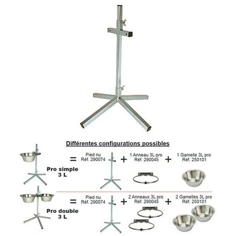 De nombreuses configurations sont possibles. Il peut être équipé, soit d’un ou deux anneaux pour gamelles professionnelles 3 litres réf 290045.