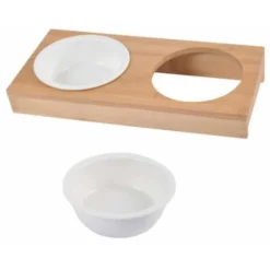 Paris Prix – Lot De 2 Gamelles Chien & Chat Bambou 29cm Blanc