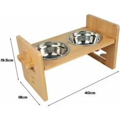 Support à Bol Pour Chien Grande Taille Avec 2 Gamelles INOX 40*22*18cm