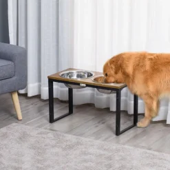 Hofuton Support à Bol Pour Chien Grande Taille Avec 2 Gamelles INOX 40*22*18cm