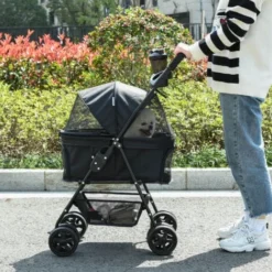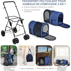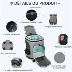 PawHut 2 En 1 Trolley Chariot Sac A Dos Sac De Transport A Roulettes Pour Chien Chat