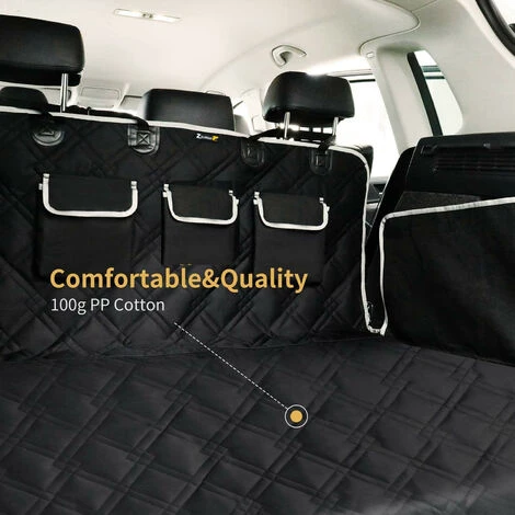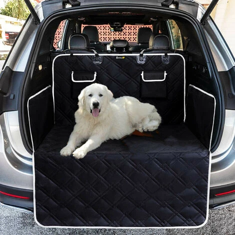 Description Description PROTECTION COMPLÈTE DES BAGAGES – Le couvre-bottes robuste et résistant aux déchirures avec protection latérale protège votre coffre de la saleté, des égratignures et des poils de chien. Le pare-chocs est bien protégé par le porte-à-faux lors du chargement ou de l’arraisonnement d’un chien! APPLICABLE UNIVERSEL – Le grand cache-bagages (185 x 103 cm) s’adapte universellement à la plupart des véhicules. Comme VUS, break et petite voiture, etc. INSTALLATION RAPIDE ET STABLE – 8 sangles attaches auto-agrippantes et 2 boutons-pression sur les appuie-tête pour une fixation stable. Le protecteur de démarrage peut être facilement installé et retiré en une minute. IMPERMEABLE ET EXTREMEMENT FACILE À NETTOYER – grâce au matériau Oxford 600D imperméable et au rembourrage en coton PP. Protégez complètement votre cargaison des liquides, de la saleté, des égratignures et des cheveux. La saleté et les poils de chien peuvent être facilement essuyés avec un simple chiffon humide! 2 GRANDS SACS ET PLIABLE – La laisse ou le jouet peut être rangé proprement. Pas de trucs dans le coffre! Le bol pour chien pliable supplémentaire garde votre chien hydraté. Description 1 En tant que propriétaire de chien, vous savez que c’est un désastre: Après une longue marche depuis les bois, votre chien griffera le pare-chocs et sautera dans le coffre avec un corps mouillé. Ensuite, tout le coffre sera bientôt rempli de poils de chien et de saletés difficiles à nettoyer. La fourrure mouillée ou la pollution animale peuvent créer une puanteur qui rendra votre voiture aussi puante. Eh bien, Protection de coffre pour chien est l’outil idéal pour protéger votre voiture de manière optimale. Les quatre couches de haute qualité offrent une protection efficace et gardent votre coffre propre!