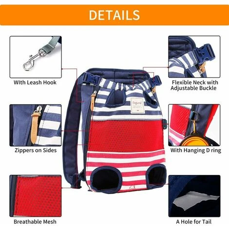 Fermeture Éclair sur 2 CôtésCe sac transport chien est vraiment facile à enfiler et retirer grâce aux fermetures éclairs sur les 2 côtés. | L’élastique sur L’encolureL’élastique sur l’encolure de ce sac voyage chien, celui offre une certaine flexibilité et un soutien très doux au cou de votre compagnon de quatre pattes. | Laisse Courte DedansDoté d’une laisse courte en dedans, ce sac ventral vous offre une grande sécurité de votre chien ou chat au cours de balade ou voyage. | Boucle Facile et SolideÉquipé des boucles faciles, vous pouvez ouvrir et fermer ce sac facilement. |