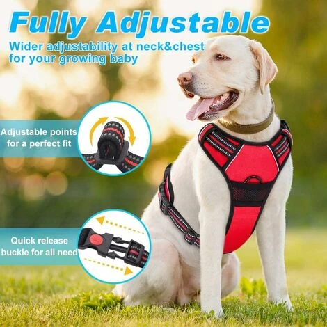 【SÉCURITAIRE ET DOUX】 — Le harnais pour chien confortable est fait de tissu Oxford en nylon durable avec un rembourrage doux pour une expérience confortable pour votre chien. La maille respirante garde votre chien au frais tout en minimisant le risque de blessure lorsque le chien tire. Matériau réfléchissant 3M pour une haute visibilité la nuit.