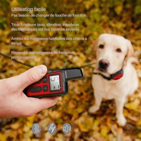【Nouvelle version avec 3 modes d’entrainement】 Ce collier de dressage pour chiens possède des modes Bip, Vibration (Niveau 1-5) et choc electrostatique (Niveau 1-5). Il s’adaptera à la personnalité de tout les chiens du doux au plus têtu